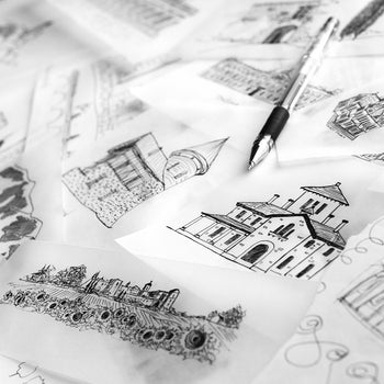 From pen to press - original hand-drawn illustrations are brought to life on our antique presses, one at a time, just for you.