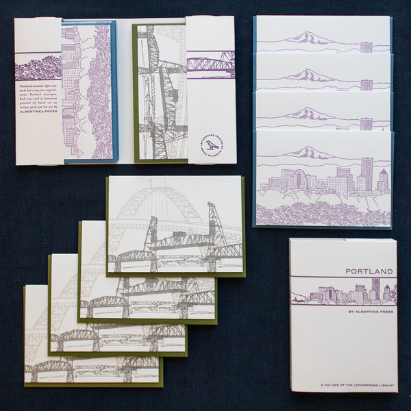 Sets of eight, blank, 4-bar sized cards are designed and letterpress printed on an antique press in our Cambridge studio, just for you, by Albertine Press.