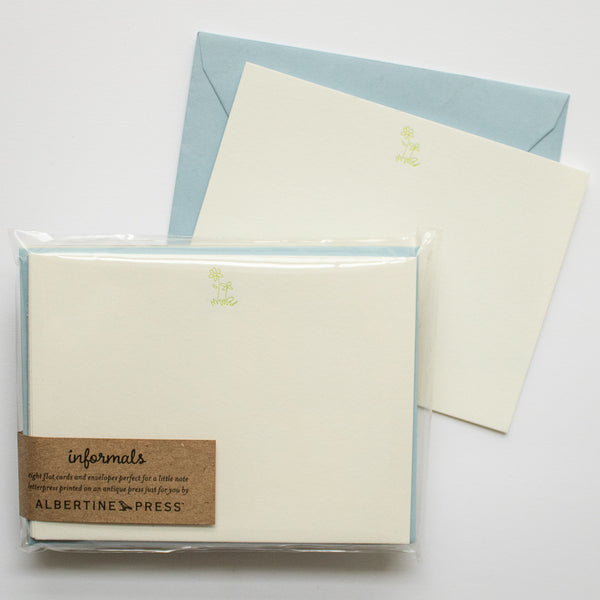 Brighten up someone's mailbox with every note you write on one of our very own Albertine Press Informal note cards.