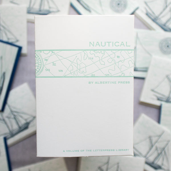 With packaging reminiscent of old book covers, each volume in the Letterpress Library collection by Albertine Press contains a set of eight decorative note cards and envelopes.