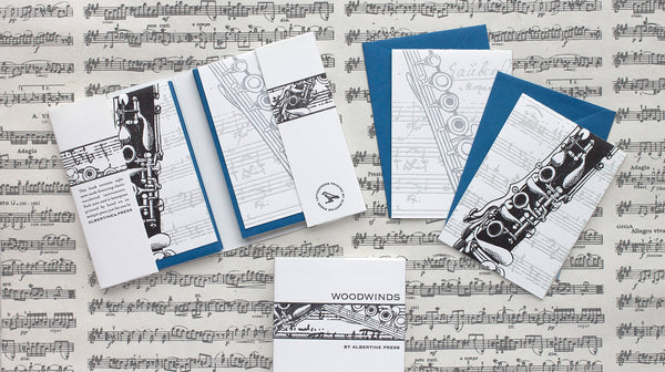 Set of eight, blank, 4-bar sized cards are designed and letterpress printed on an antique press right here in our Cambridge studio just for you.