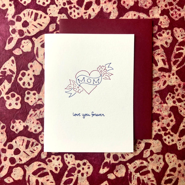 Letterpress printed by Albertine Press in our studio in Cambridge. Printed on 100% cotton paper stock and paired with a colored envelope. A2-sized and blank inside.