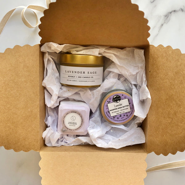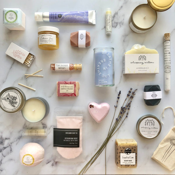 Treat your loved ones (or yourself...) to a beautifully curated care package. Choose a price point and we'll select a well-rounded assortment of bath products, candles, and other feel good items. Let us know if the recipient has any favorite scents!